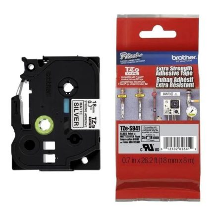 Fita Ecológica para Rotuladora,18mm, Prata Fosco, Escrita Preto, TZES941 – Brother