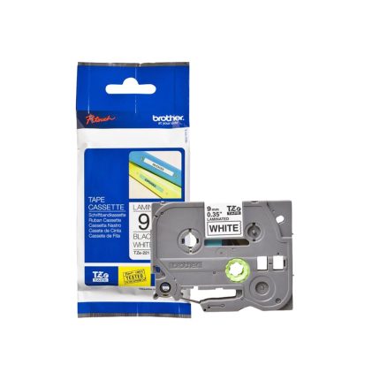 Fita Laminada Ecológica para Rotuladora, 9mm, Branco, Escrita Preto, TZE221 – Brother
