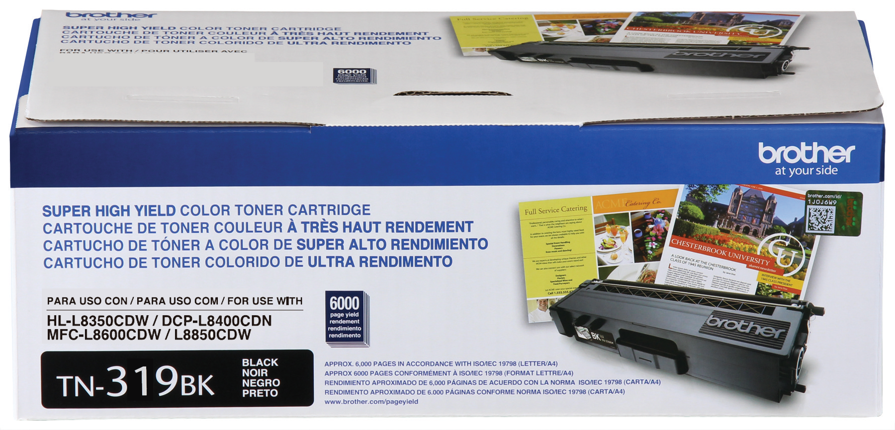 Início Suprimentos Toner Cartucho de Toner de Alto Rendimento, até 6.000 páginas, Preto, TN319BK – Brother