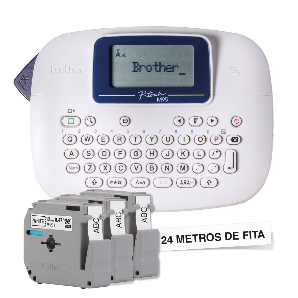 Rotulador Eletrônico Portátil Brother PTM95WT com 3 Fitas M231 – Prático, leve e ideal para uso doméstico