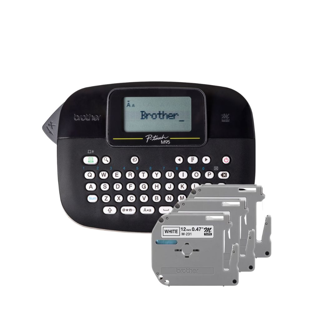 Kit completo: 1 rotulador PTM95BK + 3 fitas M231 originais (12 mm, preto/branco)