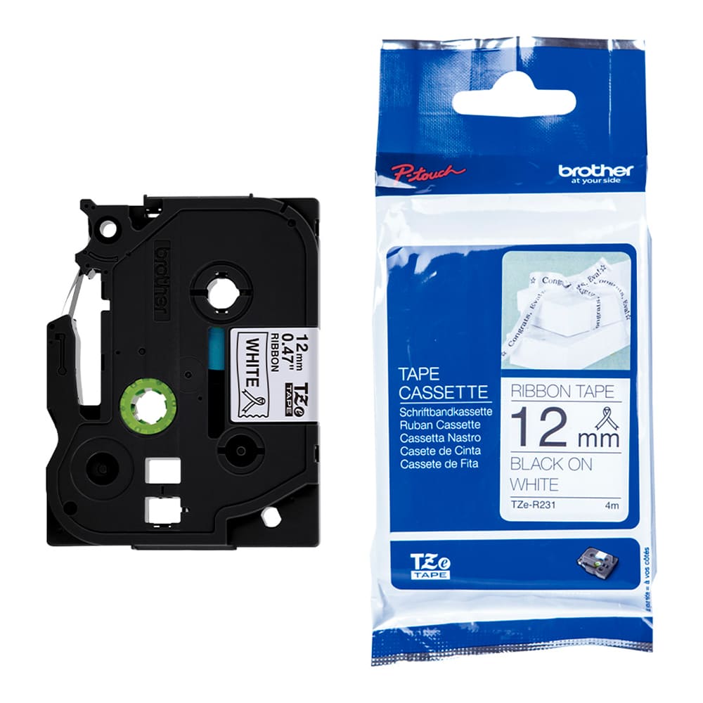Fita de Cetim para Rotulador Eletrônico, 12mm, Preto, Escrita Branco, TZER231 - Brother - Copysupply | B2B