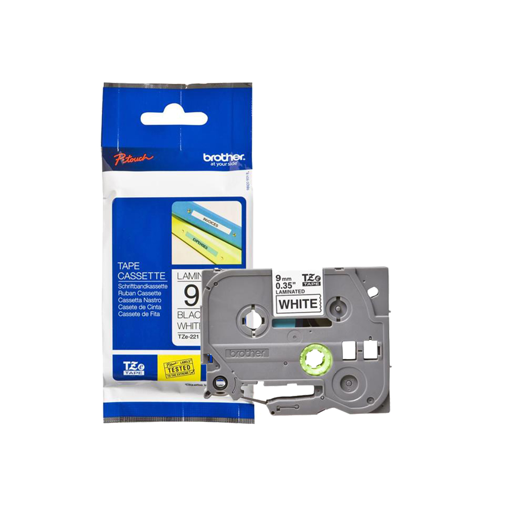 Fita Laminada Ecológica para Rotuladora, 9mm, Branco, Escrita Preto, TZE221 - Brother - Copysupply | B2B