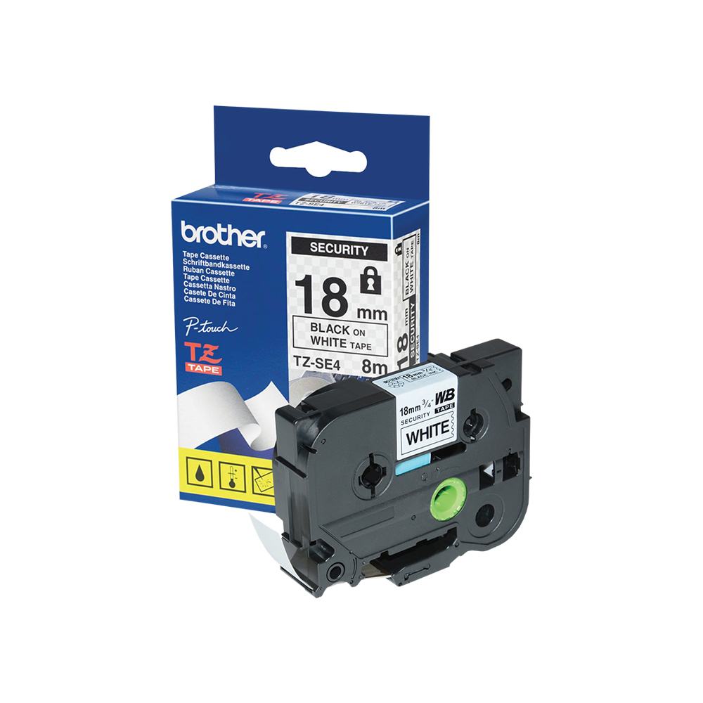 A Fita Brother TZESE4 de 18mm com fundo branco e texto preto oferece alta legibilidade e aderência superior para aplicações profissionais. Sua tecnologia de laminação com adesivo extra forte garante fixação em superfícies irregulares, texturizadas ou sujeitas a poeira e óleo. Ideal para ambientes exigentes e uso externo, a TZESE4 é compatível com diversos modelos de rotuladores Brother da linha P-Touch.