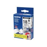 Fita para Rotulador Brother TZESE4 – 18mm, Branca com Escrita Preta, Adesivo Extra Forte, Ecológica e Durável